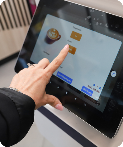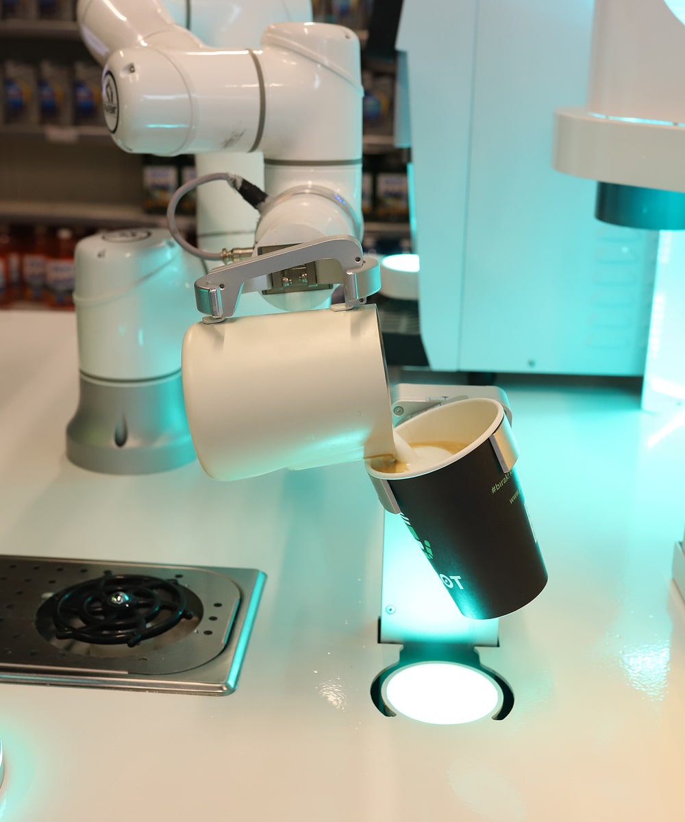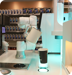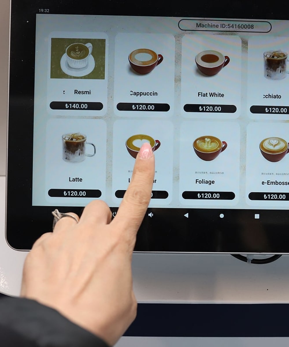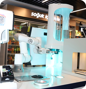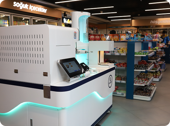 Robotik teknolojiyle kahve deneyimi yeniden tanımlanıyor. İçeceğini seç , kişiselleştir, ve ödeme yap - hepsi sadece üç dokunuşta.